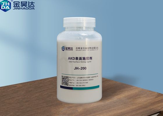 Mit der Entwicklung der Papierindustrie wird die traditionelle Größenform, die sowohl die interne als auch die Oberflächengröße umfasst, durch die Oberflächengröße ersetzt. .JH-AKD200 wird durch unsere jahrelangen Bemühungen entwickelt. Es wird durch Polymeremulsion und Arten von kationischen Rohstoffen durch speziellen Prozess ko-polymeriert. Es kann den internen Größen-Agent vollständig ersetzen,die Größenkosten erheblich reduzieren,die Gelatinisationszeit verkürzen,die Papieroberflächenfestigkeit erhöhen und eine bessere Wasserbeständigkeit haben.Papierplatten usw. mit HolzmasseStrohpulpe, Bambuspulpe und Abwasserpulpe